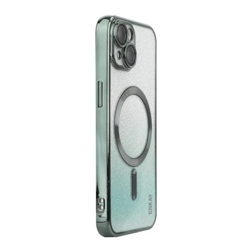 Pour iPhone 15 ENKAY Hat-Prince Étui de téléphone antichoc à paillettes magnétiques avec film d'objectif (vert)