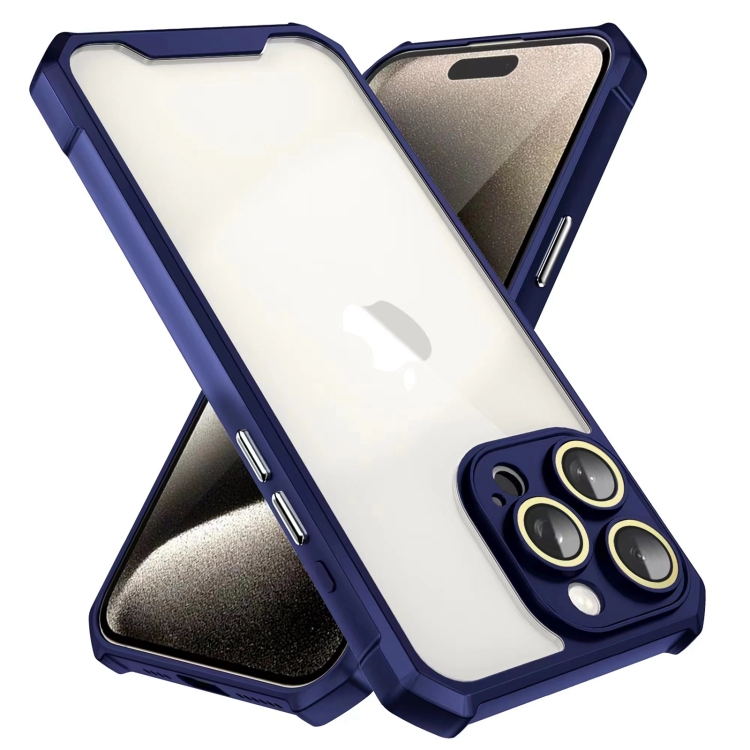 Estuche Acrílico para iPhone 15 a Prueba de Golpes con Película de Vidrio para Lentes (Azul)