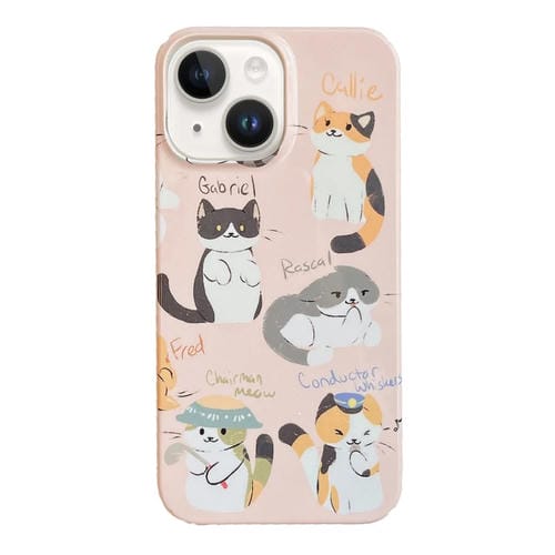 Estuche rígido para teléfono iPhone 15 con Película artesanal de dibujos animados (Gatos Lindos)