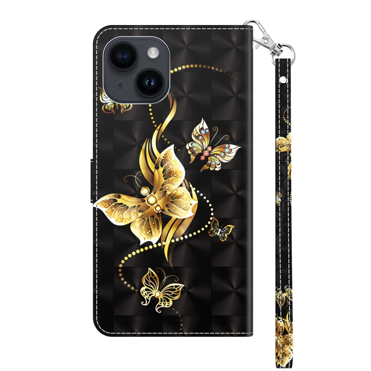 Funda de Cuero para iPhone 15 Pintada en 3D Mariposa Golondrina Dorada