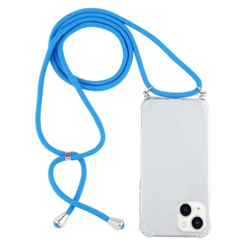 Funda TPU para iPhone 15 Transparente a Prueba de Golpes con Cordón (Azul)