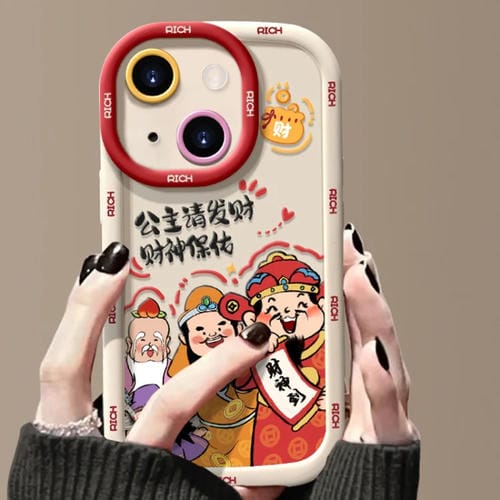 Pour iPhone 15 Puffy Phone Case Princess Please Fortune God of Wealth Drop Proof Phone Case (Blanc)