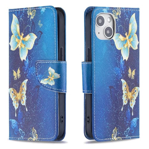 Pour iPhone 15 Étui de téléphone en cuir à rabat à motif de dessin coloré (papillon doré)