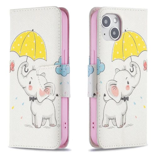 Pour iPhone 15 Étui de téléphone en cuir à rabat à motif de dessin coloré (parapluie éléphant)