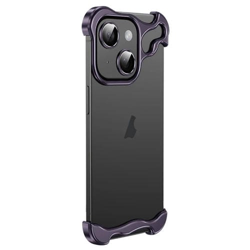 Estuche para Teléfono iPhone 15 Plus Almohadilla de Esquina de Metal sin Marco Película para Lentes (Púrpura)