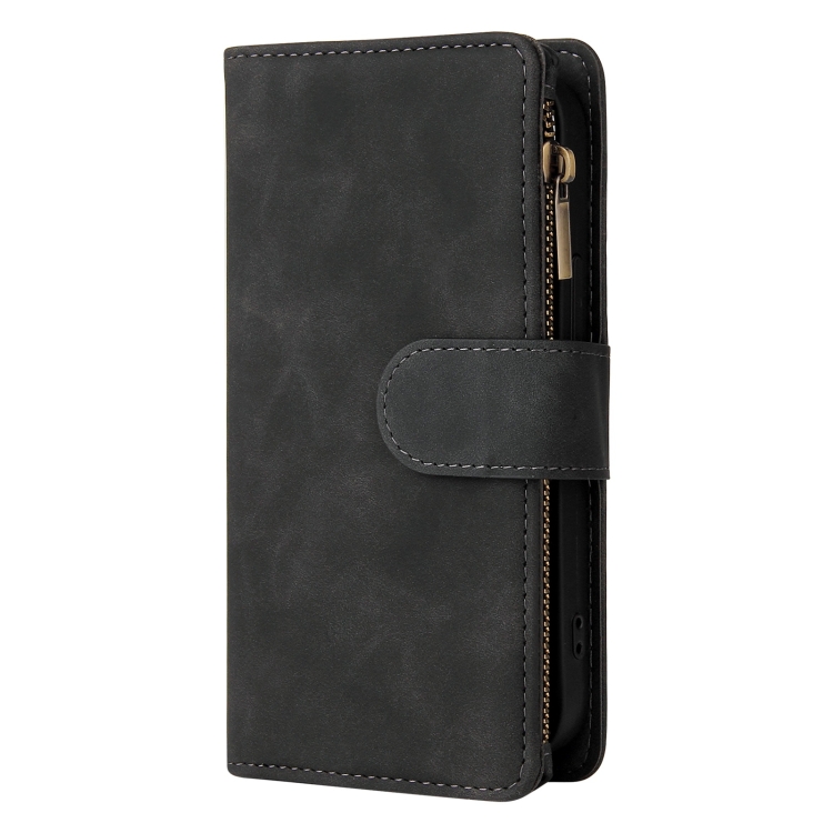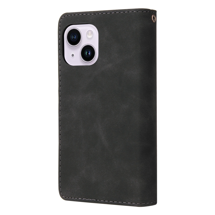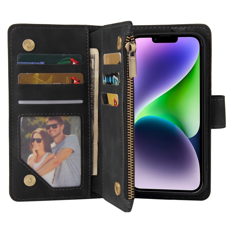 Funda para Teléfono iPhone 15 Plus Cuero con Billetera MultiTarjeta Multifuncional (Negro)