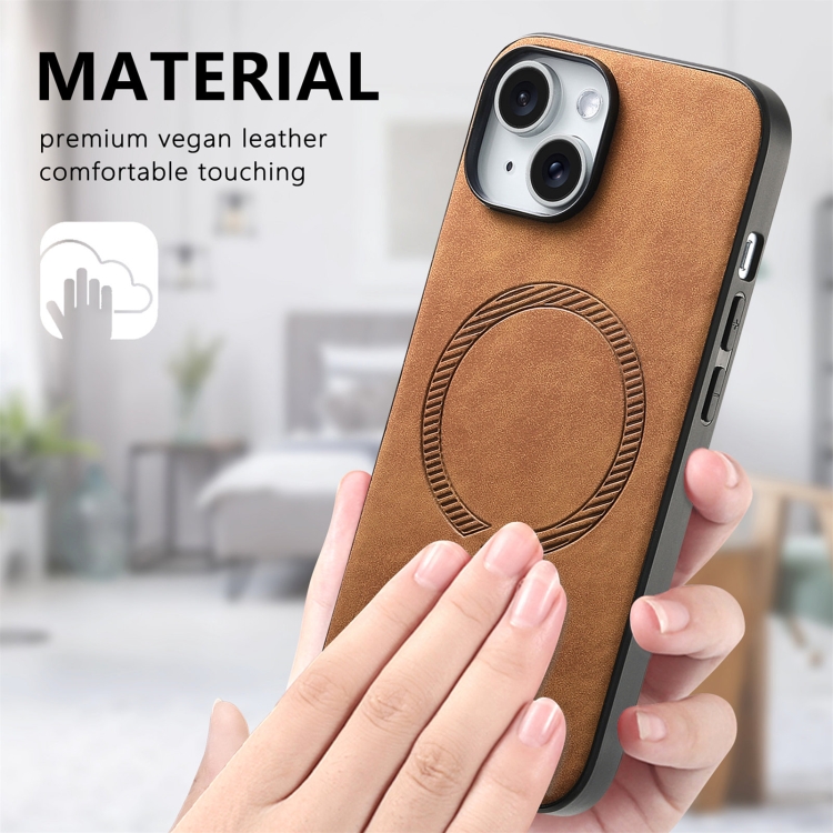 Funda para Teléfono iPhone 15 Plus con Contraportada de PU Magsafe Retro (Marrón)