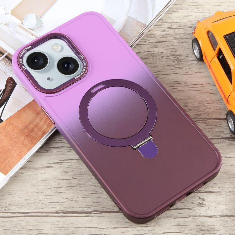 Funda para Teléfono iPhone 15 Plus con Soporte Magsafe Gradiente Silicona Líquida (Rojo Vino Púrpura)