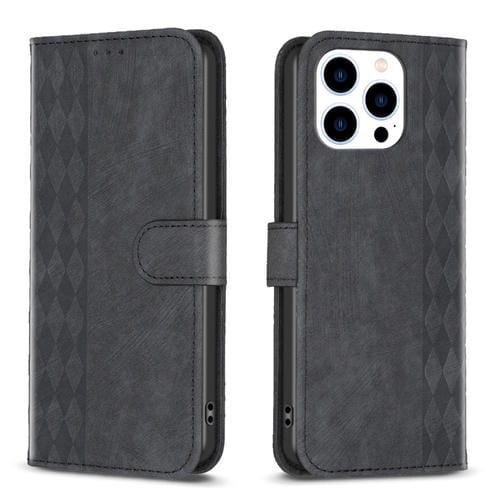 Funda de Teléfono iPhone 15 Pro Cuero En Relieve a Cuadros (Negro)