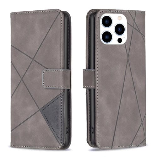 Funda para Teléfono iPhone 15 Pro Hebilla Magnética Rombo Textura Cuero (Gris)