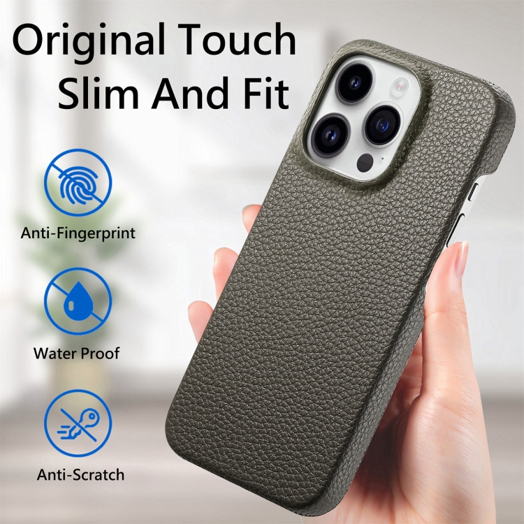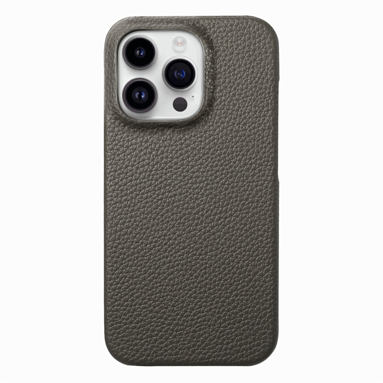 Funda Trasera iPhone 15 Pro Litchi Oil Edge Cuero (Gris)