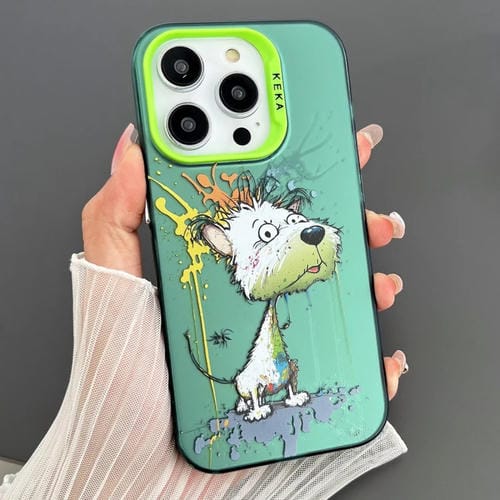 Funda para Teléfono iPhone 15 Pro Max Imd Animal Graffiti TPU + PC Doble Cara (Perro Verde Blanco)