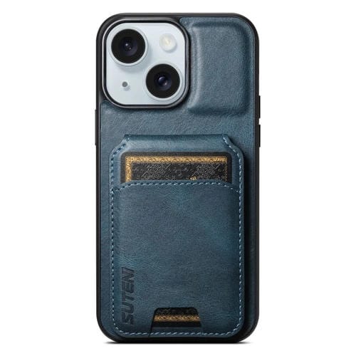 Pour iPhone 15 Suteni H02 Étui de téléphone en cuir avec support et portefeuille (bleu)