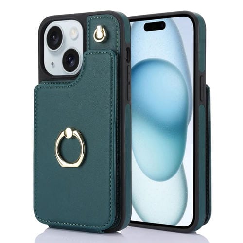 Funda para Teléfono Ym005 Skin Feel Card Bag para iPhone 15 con Cordón Largo (Verde)