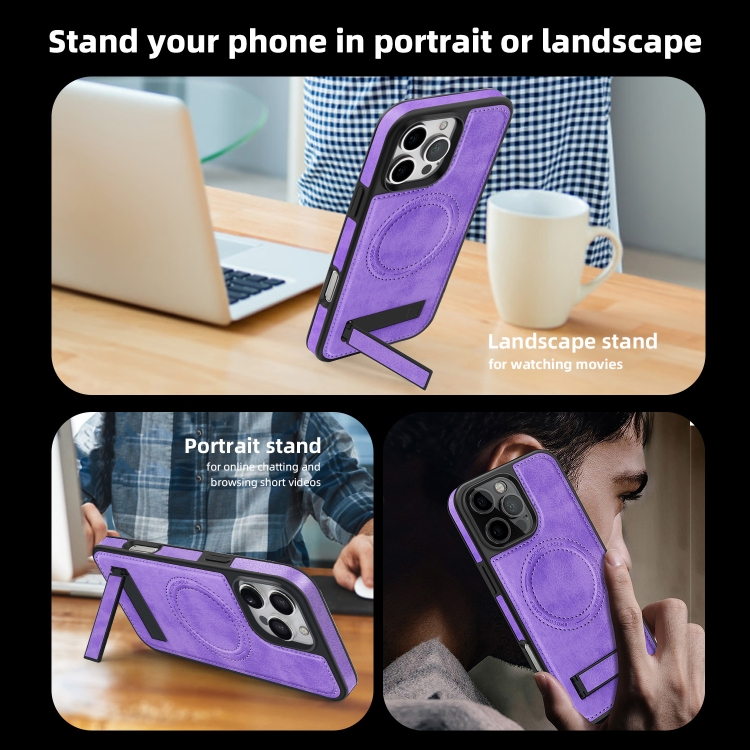 Funda para Teléfono iPhone 16 Pro Magsafe PU con Soporte Multifunción (Taro Morado)