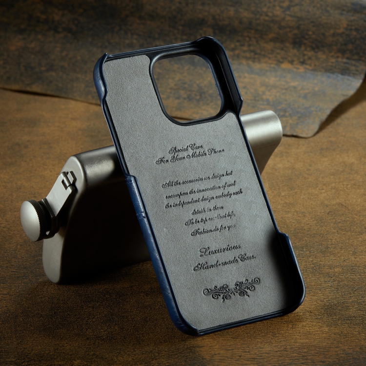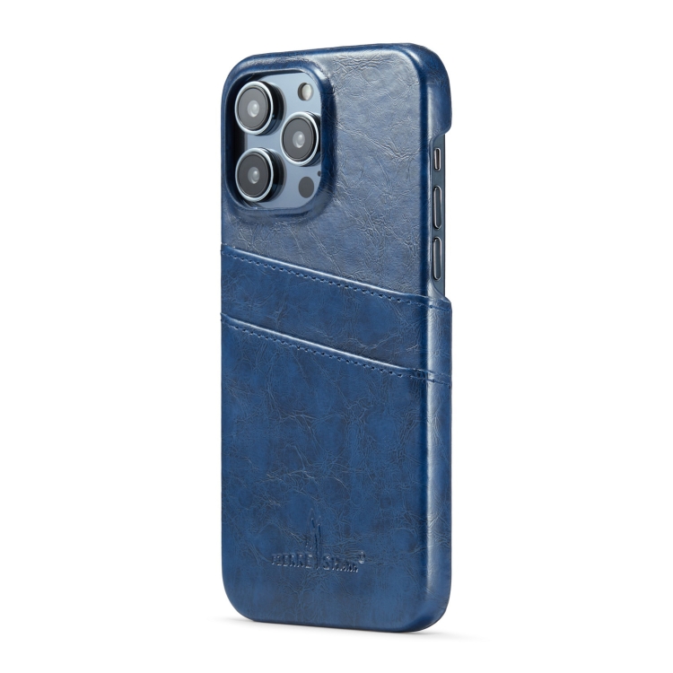Funda para iPhone 16 Pro Max Fierre Shann Cuero PU Retro Oil Wax con Ranuras para Tarjetas (Azul)