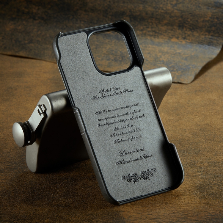 Funda para iPhone 16 Pro Max Fierre Shann Retro Oil Wax Texture Cuero PU con Ranuras para Tarjetas (Gris)