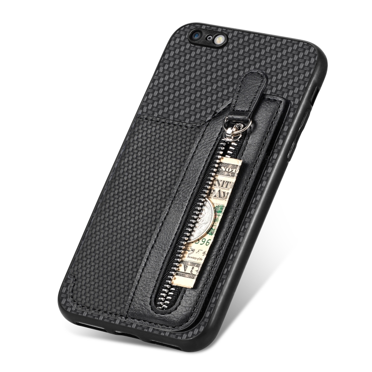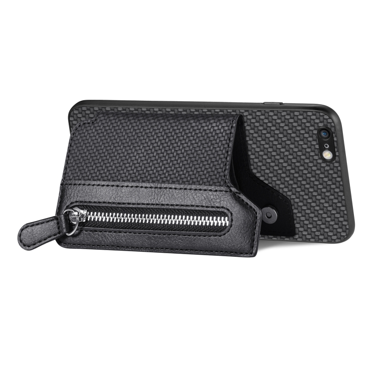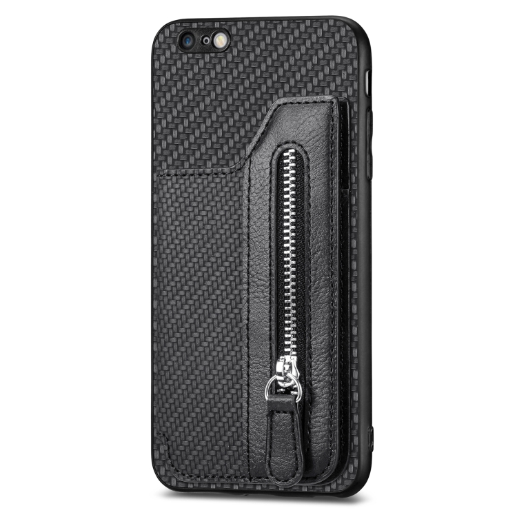 Estuche para Teléfono iPhone 6 Plus 6S Plus Billetera Cremallera Horizontal Fibra de Carbono (Negro)