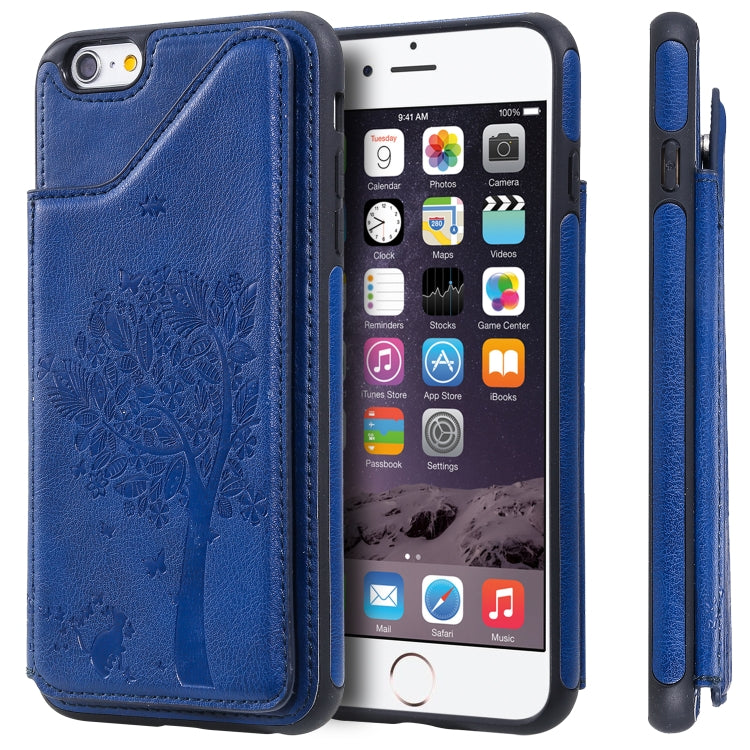 Funda Protectora para iPhone 6 Plus y 6S Plus Cat Tree Engessing con Ranuras de Tarjetas y Soporte de Fotos (Azul)