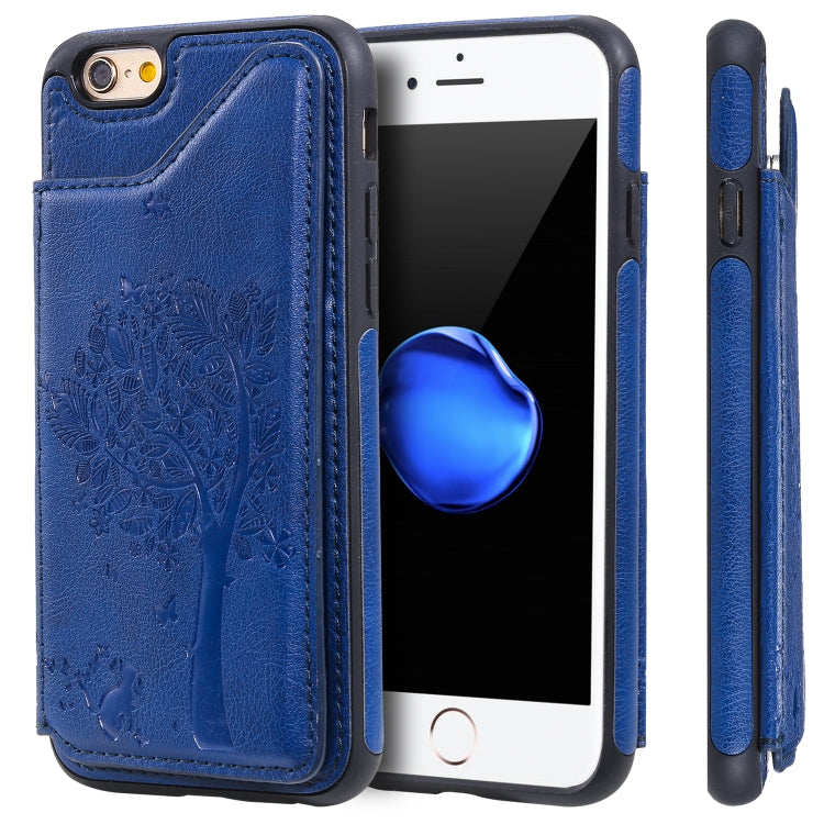 Funda Protectora para iPhone 6 y 6S con Patrón Relieve Árbol de Gato, Ranuras para Tarjetas, Marco de Fotos y Soporte (Azul)