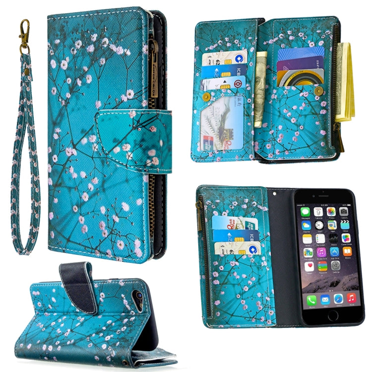 Funda de Cuero para iPhone 6S y 6 con Patrón de Dibujo, Cremallera, Tapa Horizontal, Soporte, Ranuras para Tarjetas y Billetera (Plum Blossom)