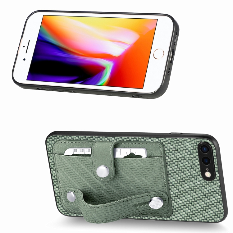 Funda para iPhone 7 Plus / 8 Plus Muñequera Kickstand Tarjeta Monedero Contraportada Caja con Herramienta Cuchillo (Verde)