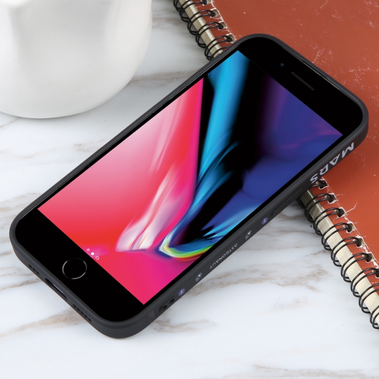 Funda de teléfono para iPhone 7 Plus y 8 Plus Mars Astronaut patrón borde recto silicona (Black)
