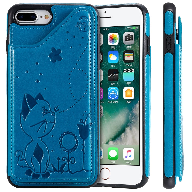 Estuche protector para iPhone 8 Plus 7 Plus Cat Bee Patrón en Relieve con Ranuras para Tarjetas y Marco de Fotos (Azul)
