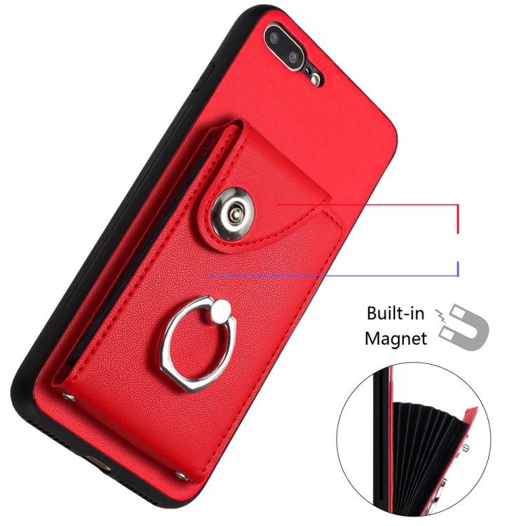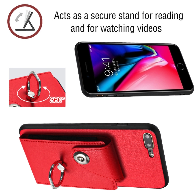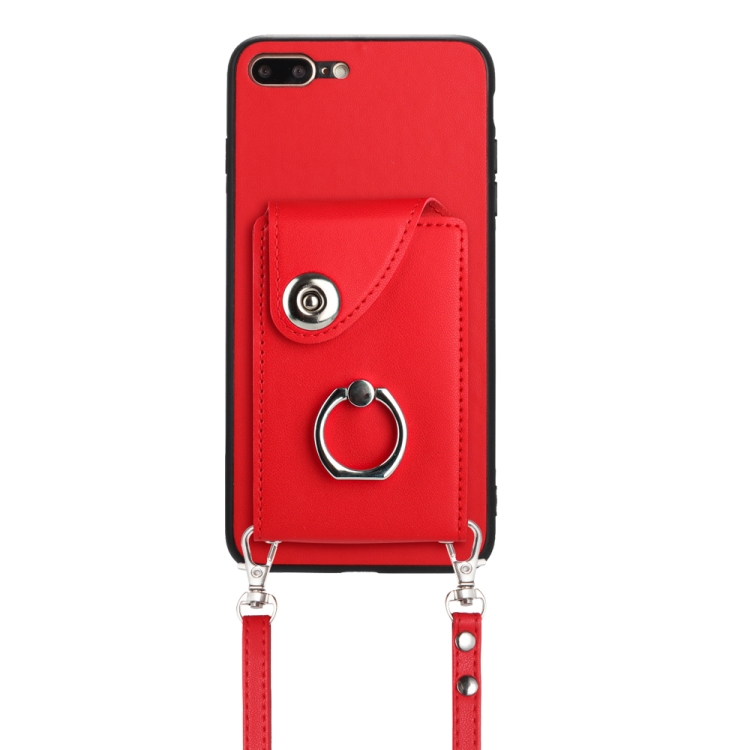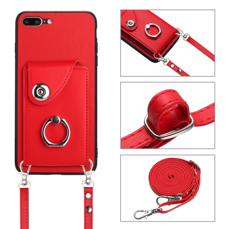 Funda para Teléfono iPhone 8 Plus/7 Plus con Soporte para Anillo y Bolsa para Tarjeta con Cordón Largo (Rojo)