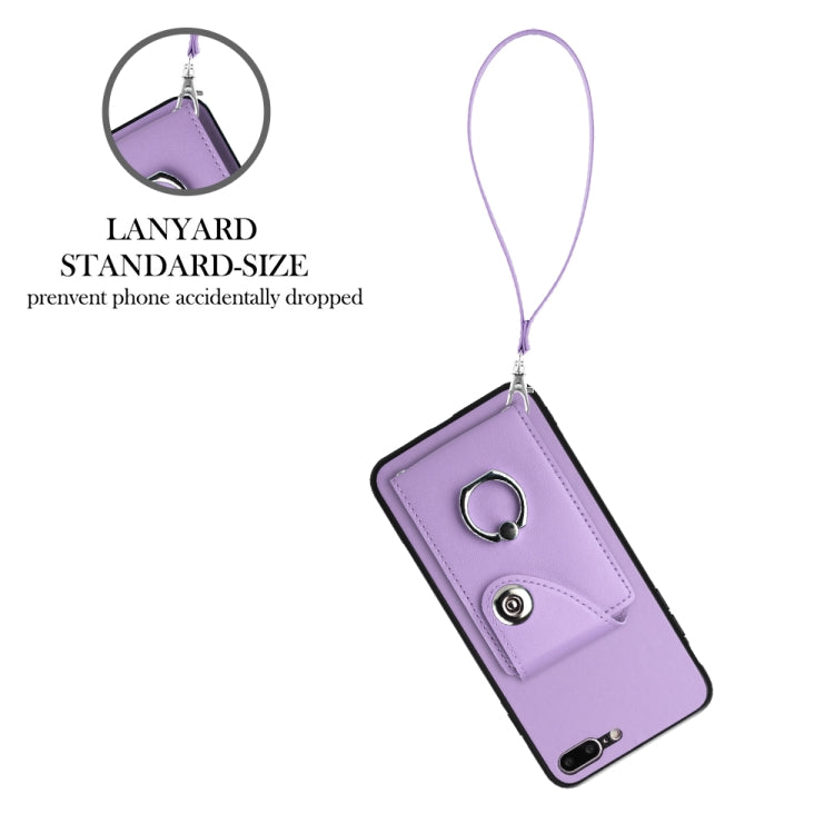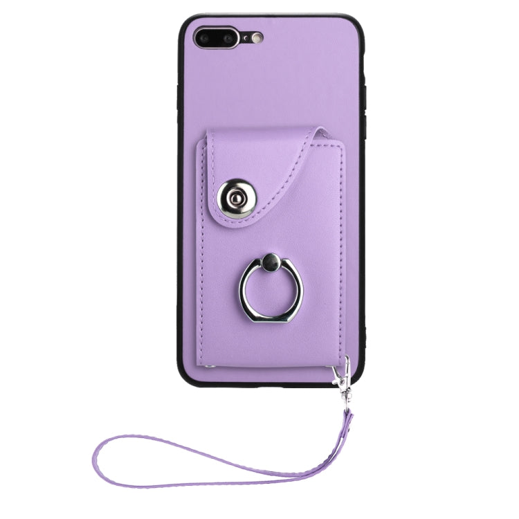 Funda para Teléfono iPhone 8 Plus/7 Plus de PU con Soporte para Anillo y Bolsa para Tarjeta con Cordón (Púrpura)