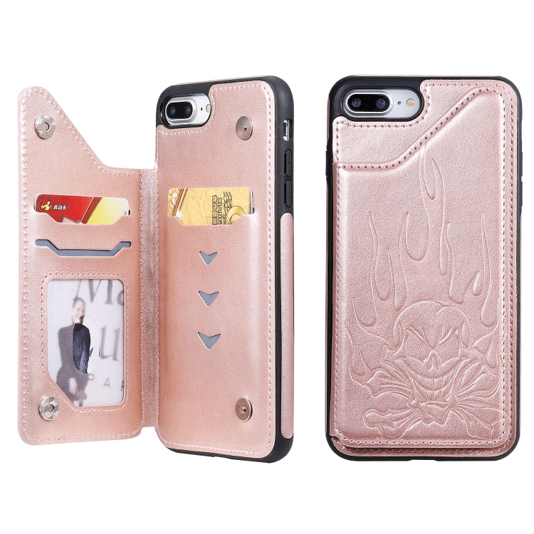Funda Protectora iPhone 8 Plus 7 Plus Estampado Cabeza de Calavera Soporte Ranuras Tarjetas Billetera (Oro Rosa)