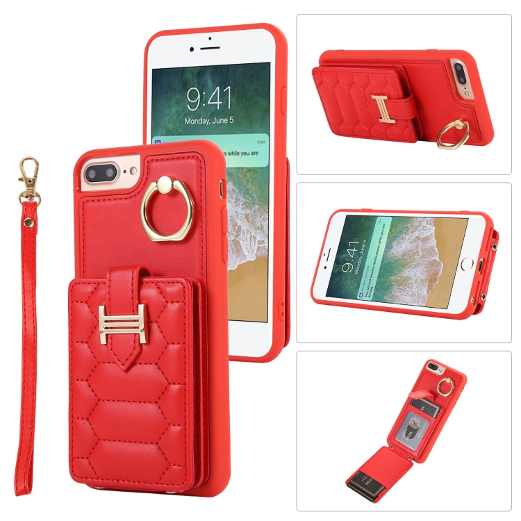 Funda para iPhone 8 Plus y 7 Plus Vertical Card Bag Ring Holder con Doble Cordón (Rojo)