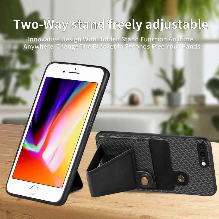 Funda de Teléfono para iPhone SE 2022/2020/7/8 con Soporte en Forma de K y Billetera de Fibra de Carbono (Negro)