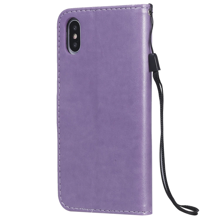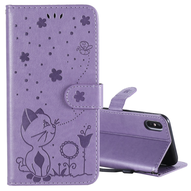 Funda de cuero Cat Bee para iPhone X Xs con tapa horizontal, soporte, ranuras para tarjetas y billetera (Púrpura)