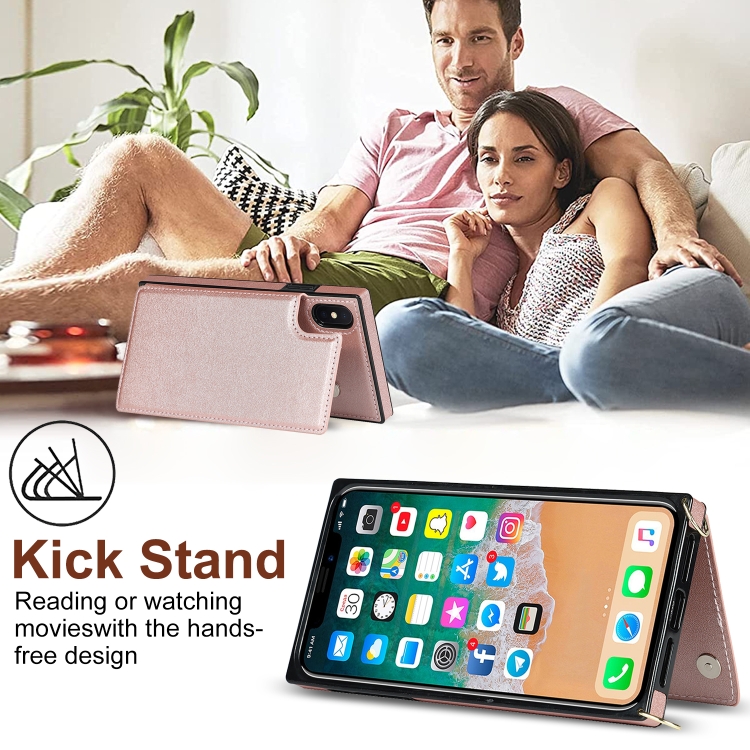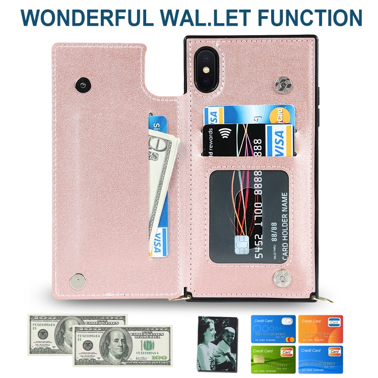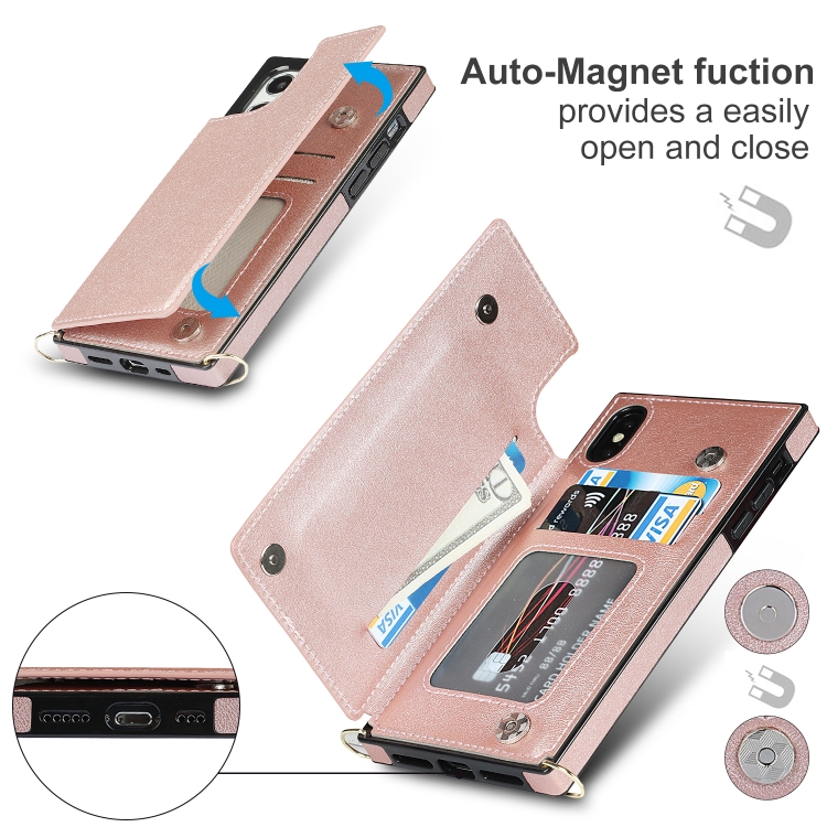 Funda para iPhone X / Xs Cross-Body Square Double Buckle Flip TPU + PU con Ranuras para Tarjetas y Correa (Oro Rosa)