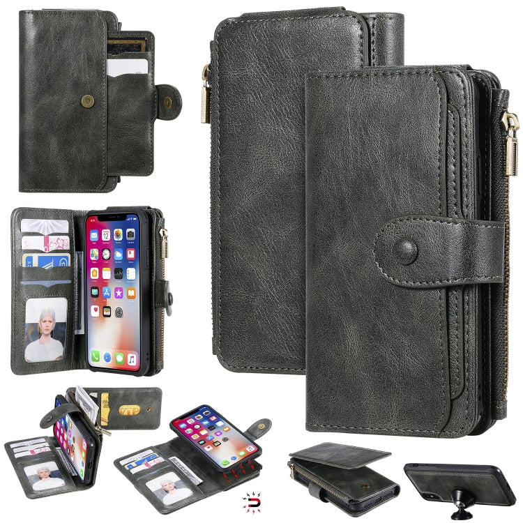 Estuche de Cuero para iPhone X Xs con Tapa Horizontal Magnética Desmontable Multifuncional Ranuras Tarjetas Soporte Billetera Marco Fotos (Verde Oscuro)