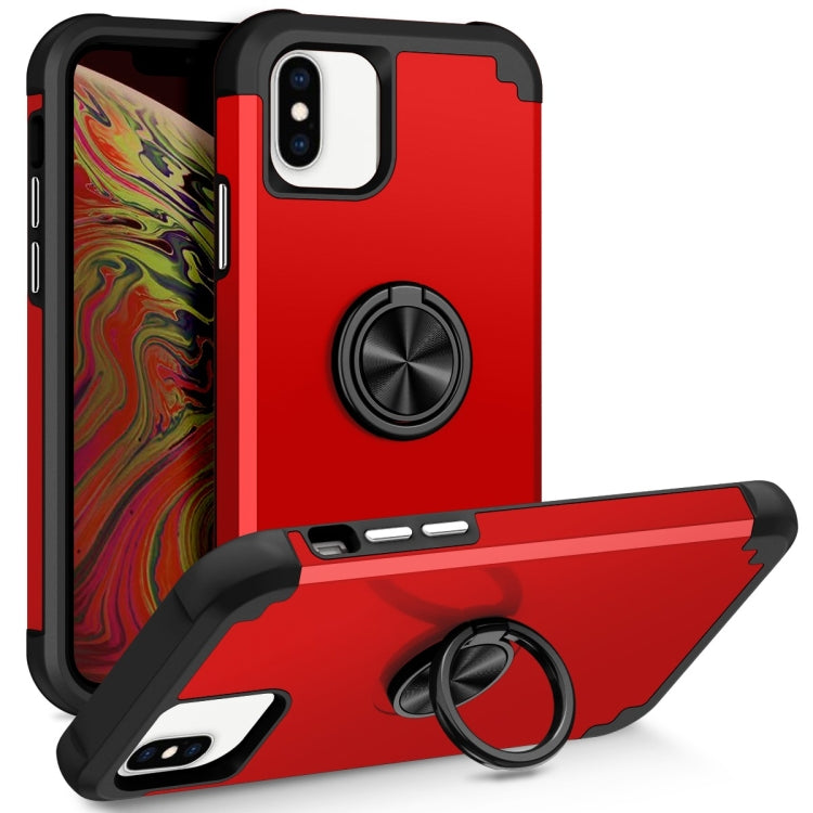 Funda para Teléfono L2 para iPhone X Xs con Soporte de Anillo Giratorio Magnética (Rojo)