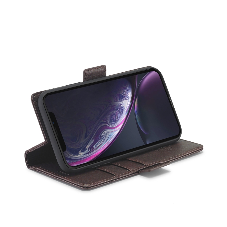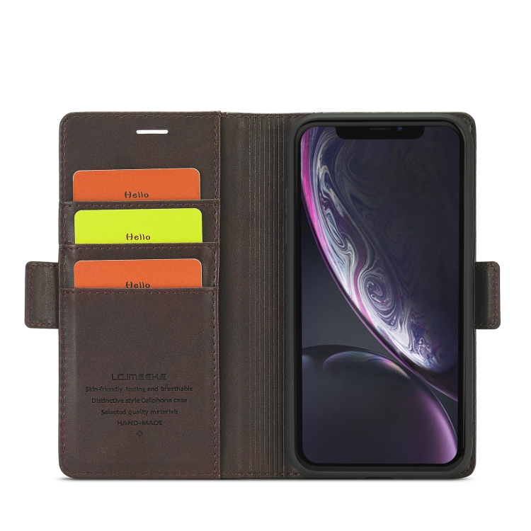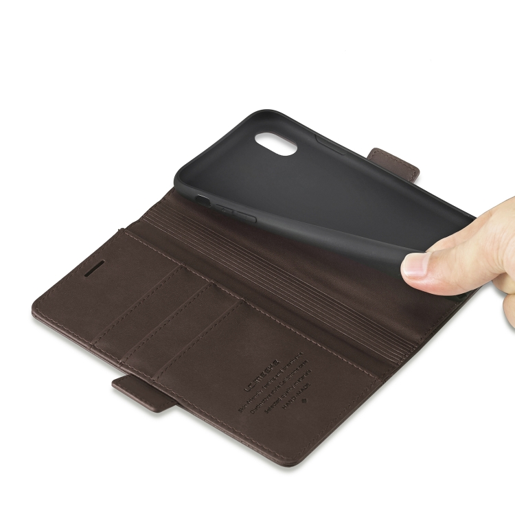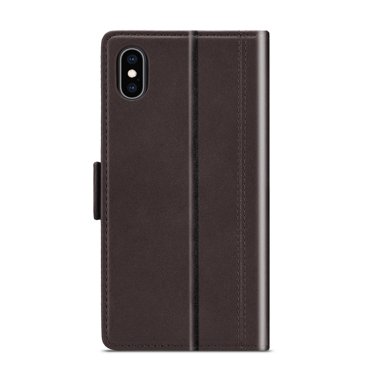 Funda para iPhone X Xs Lc.Imeeke Hebilla Magnética Pu TPU Cuero Tapa Horizontal Soporte Ranuras Tarjetas Billetera (Café)