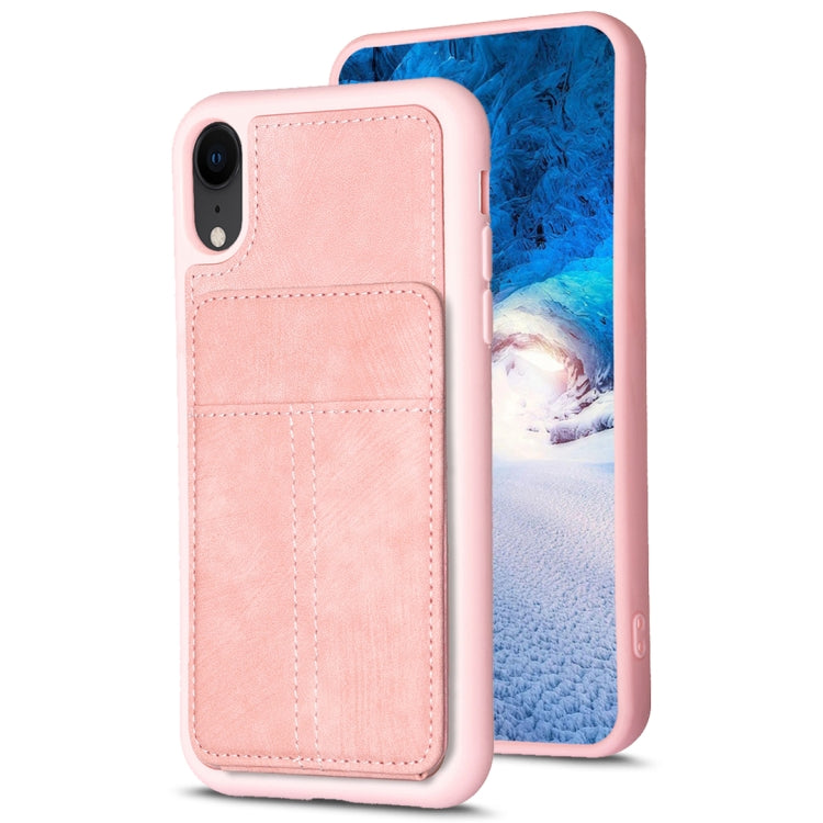 Estuche para Teléfono Bf28 para iPhone Xr con Bolsa para Tarjeta Esmerilada y Soporte (Rosa)