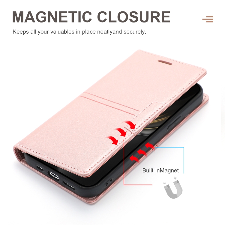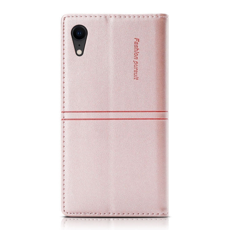 Funda para iPhone Xr Dream Magnetic Suction Cuero con Tapa Horizontal, Soporte, Ranura para Tarjeta y Billetera (Oro Rosa)