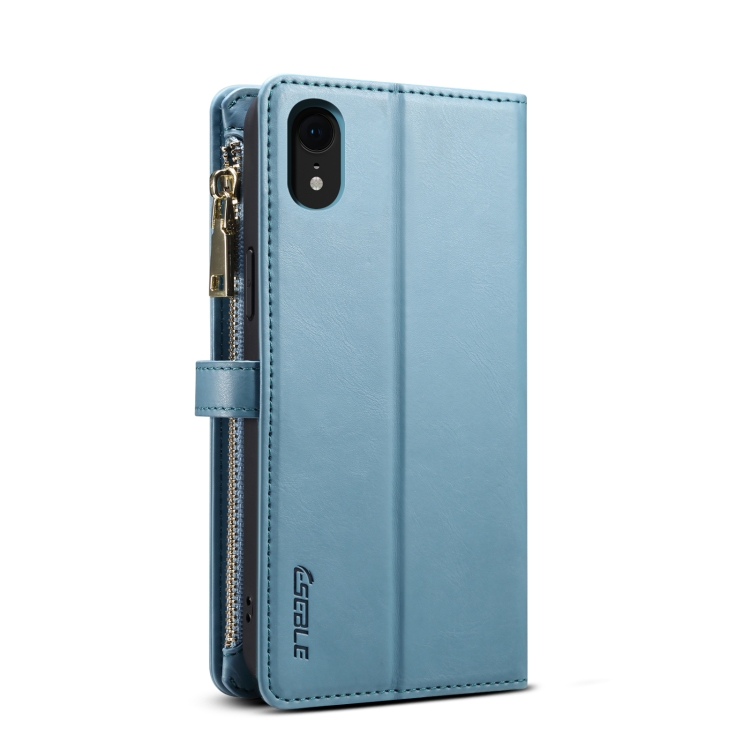 Funda para iPhone Xr Eseble Star Series Lanyard Zipper Wallet Rfid de Cuero (Azul)