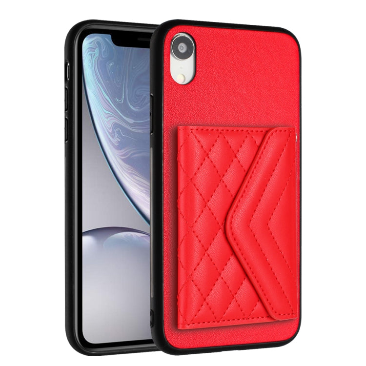 Pour étui de téléphone RFID iPhone XR avec sac pour carte à texture rhombique et longue lanière (rouge)
