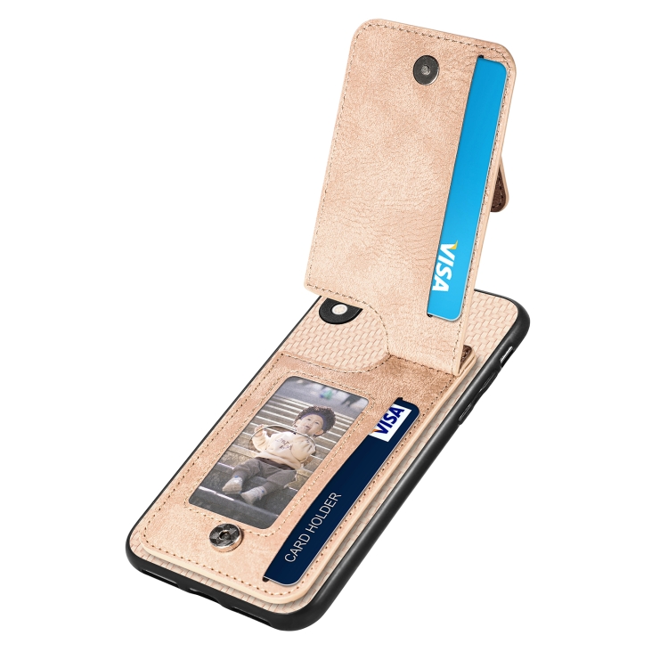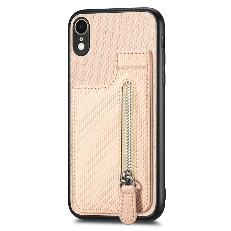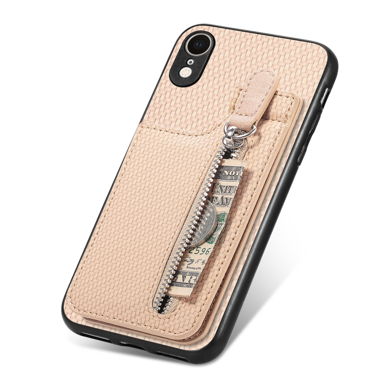 Funda de teléfono iPhone Xr con cremallera vertical de fibra de carbono (Caqui)