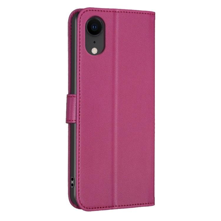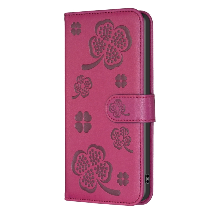 Funda para Teléfono iPhone Xr Cuero con Relieve de Cuatro Hojas (Rojo Rosa)