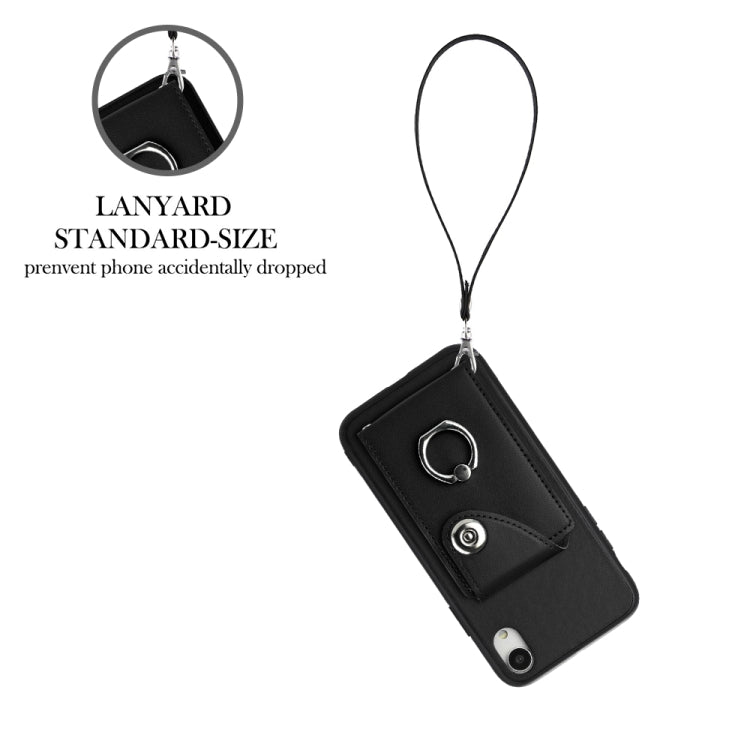 Funda para Teléfono iPhone Xr PU con Soporte para Anillo y Bolsa para Tarjeta con Cordón (Negro)