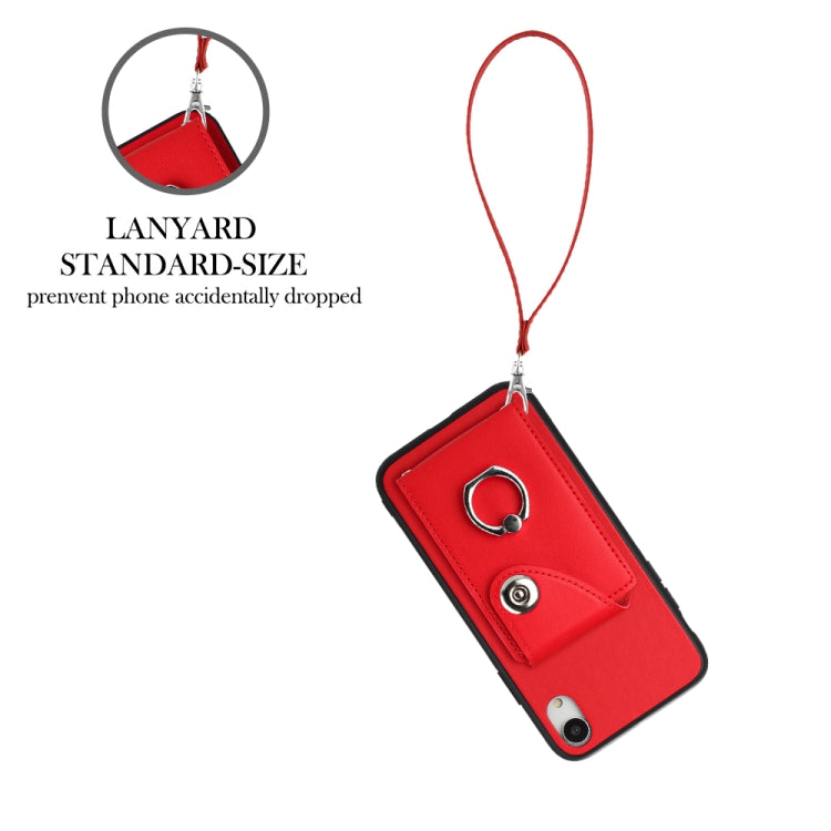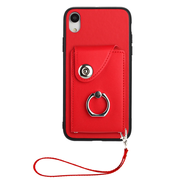 Funda para Teléfono iPhone Xr de PU con Soporte para Anillo y Bolsa para Tarjeta con Cordón (Rojo)