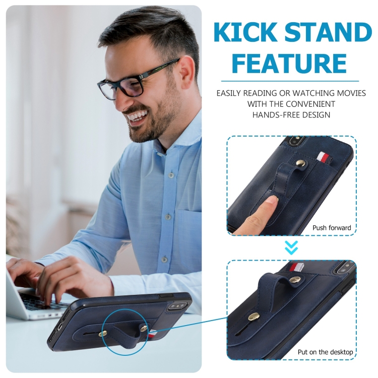 Funda para iPhone Xr Muñequera Kickstand Wallet de Cuero para Teléfono (Azul)