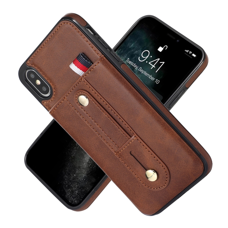 Funda para iPhone Xr Muñequera Kickstand Wallet de Cuero para Teléfono (Marrón)