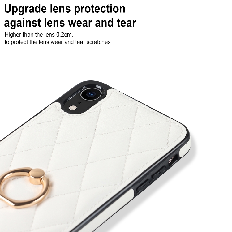 Funda para iPhone Xr Rhombic PU Cuero con Soporte para Anillo (Blanco)