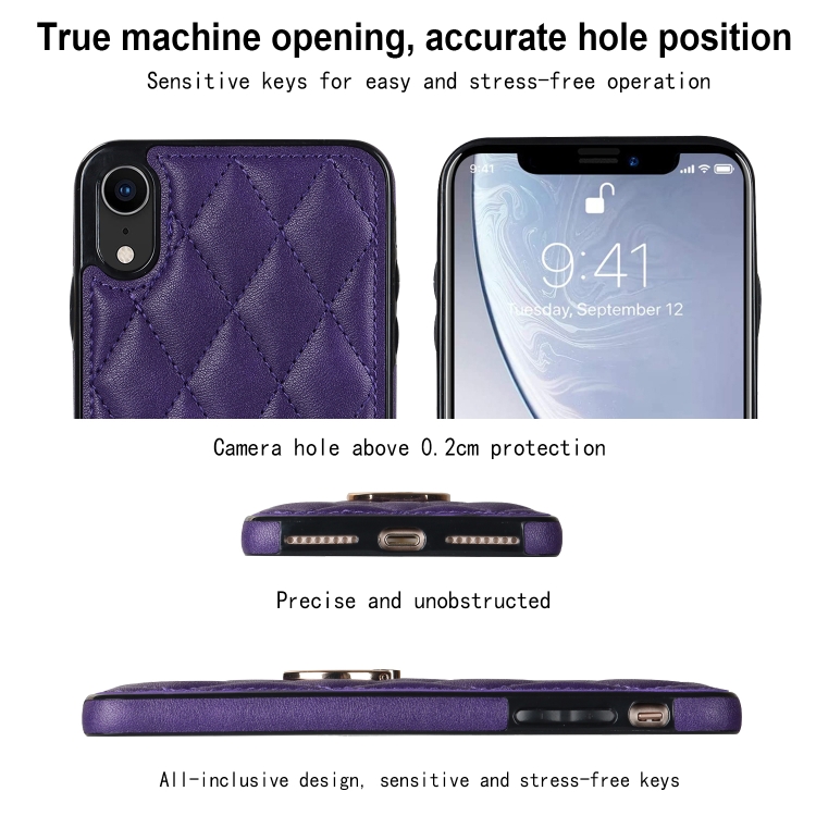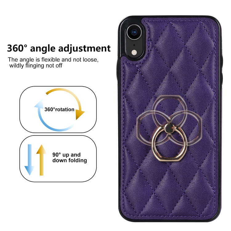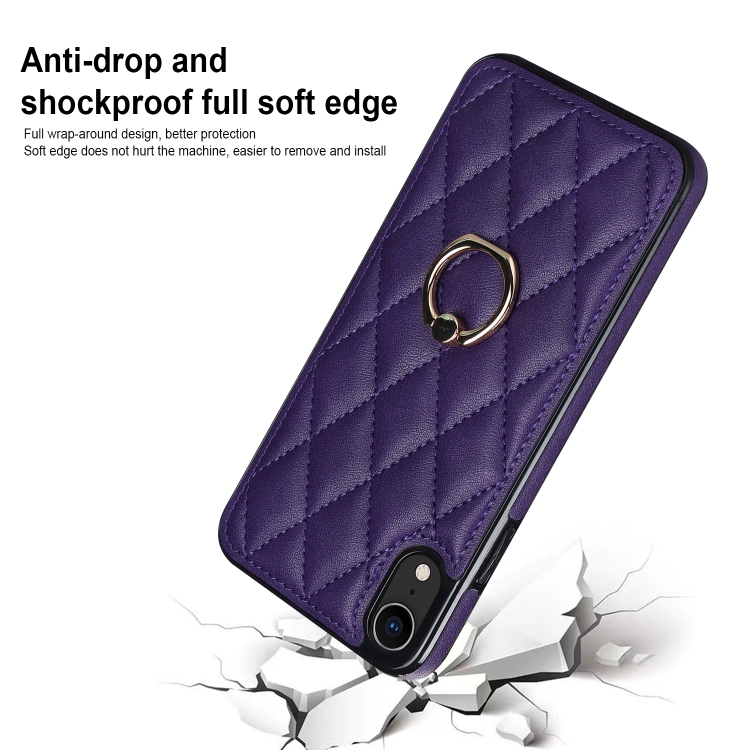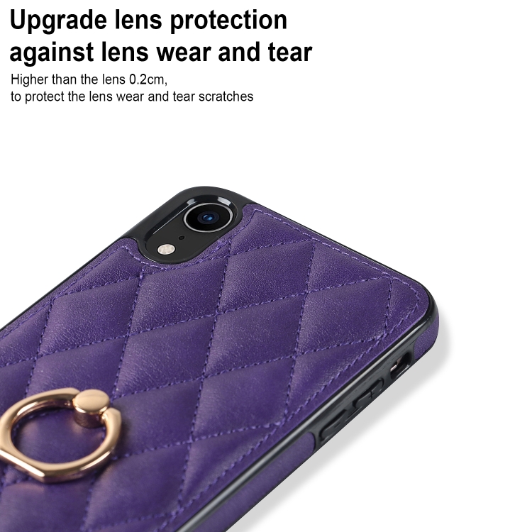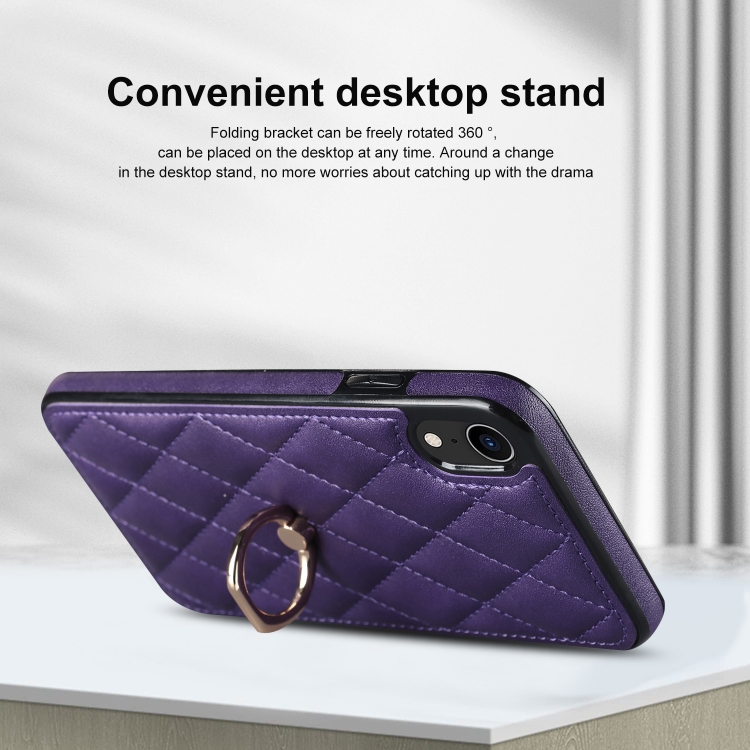 Funda para teléfono iPhone Xr Rhombic PU Cuero con soporte para anillo (Púrpura)